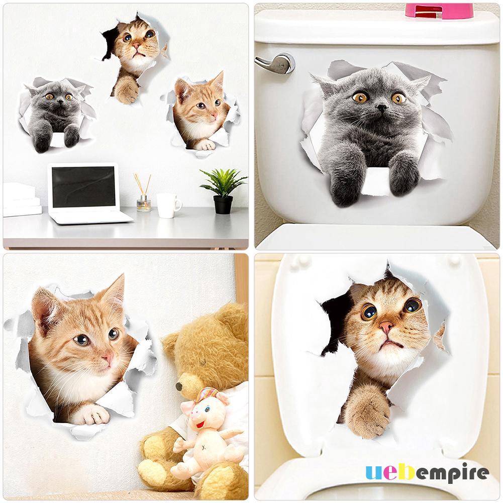 Stiker Dinding Decal Desain Kucing Lucu 3d Bahan Pvc Dapat Dicopot Shopee Indonesia