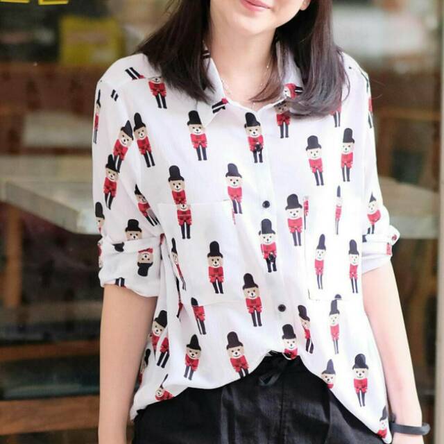 Ss Kemeja Kartun Putih Soldier Wanita Murah Simple Elegan Lucu Imut Cewek Gaul Casual Sporty Formal Shopee Indonesia