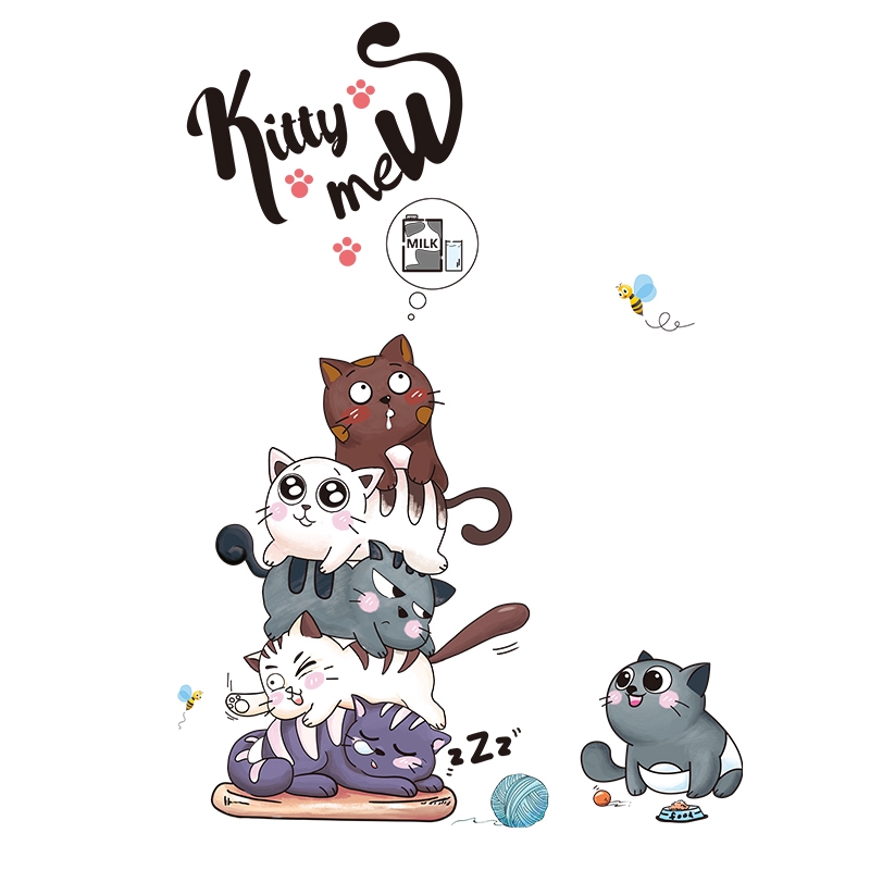 Kartun Kucing Pintu Lemari Stiker Lucu Kreatif Stiker Dinding Stiker Asrama Dekorasi Kamar Wallpaper Dinding Perekat Diri Shopee Indonesia