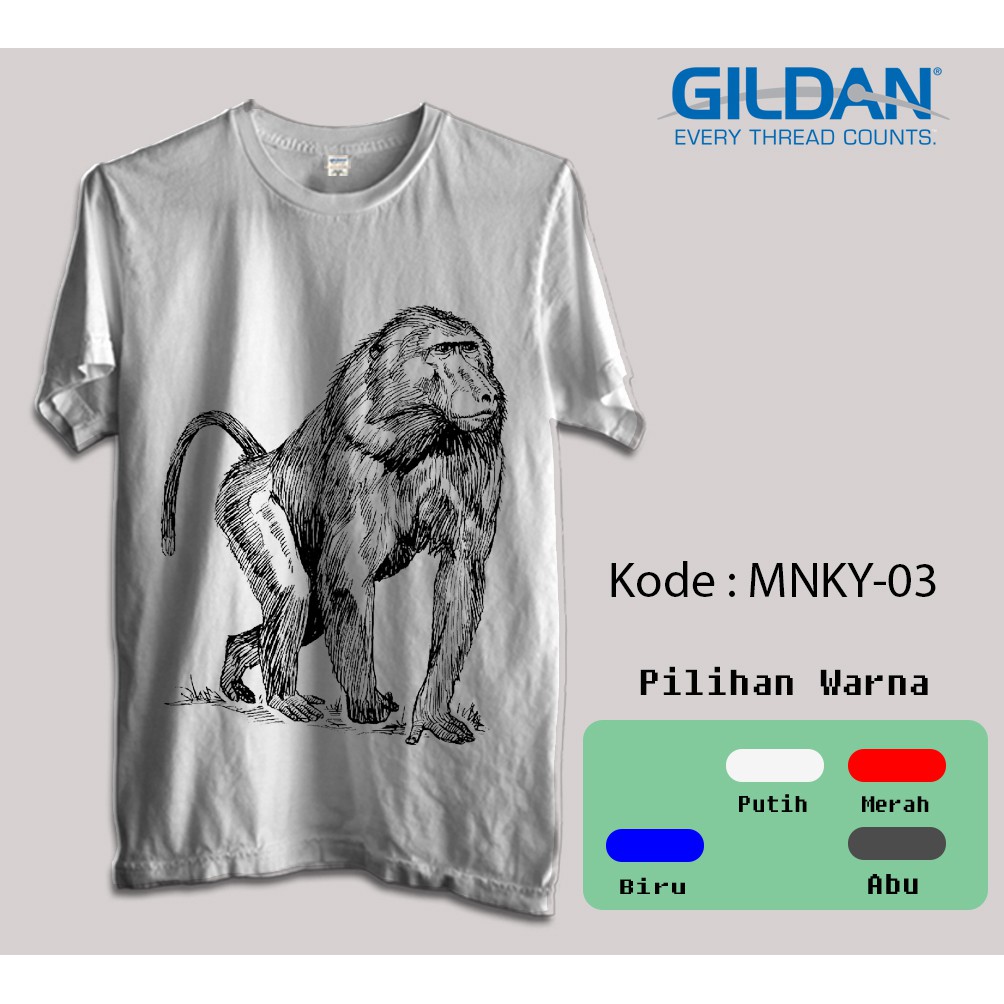 Kaos Gildan Softstyle Animal Icon Gambar Monyet Monkey B W Shopee Indonesia
