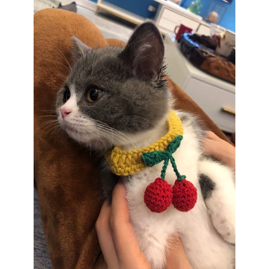 Ins Hewan Peliharaan Kucing Anjing Buatan Tangan Rajutan Kerah Lucu Kartun Susu Kecil Bib Bib Bib Ka Shopee Indonesia