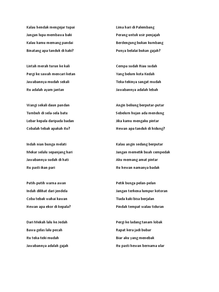 Pantun Teka Teki Beserta Jawabannya Dengan Pantun Informasi Seputar Indonesia
