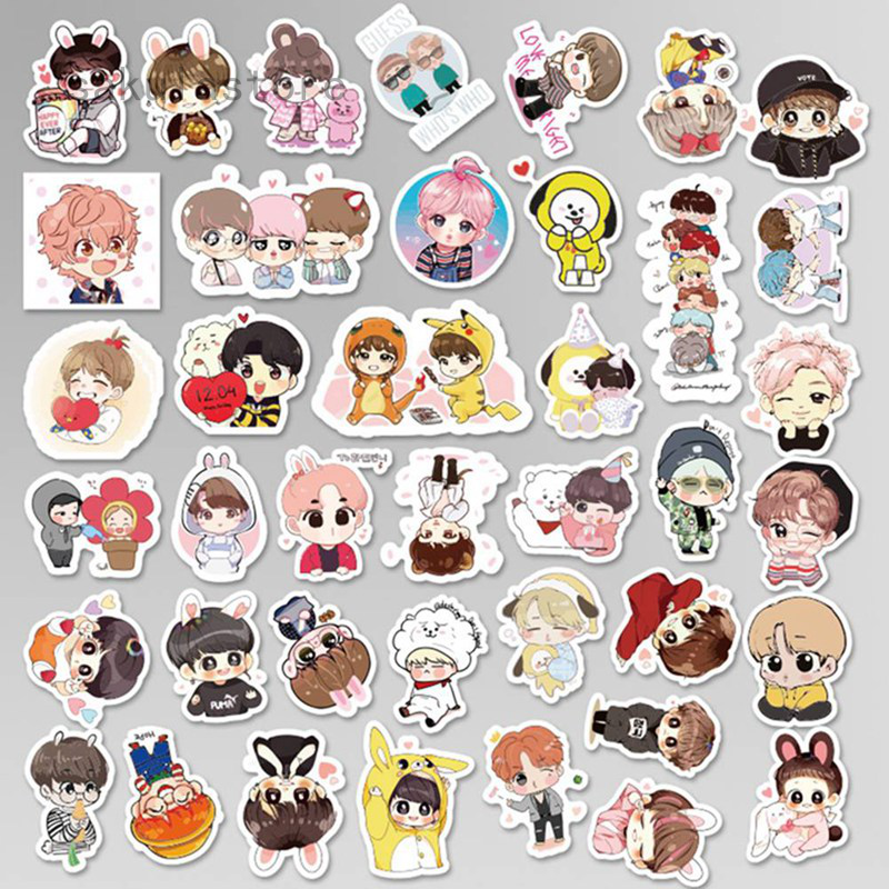 40pcs Stiker Desain Kartun Bts Member Lucu Jimin V Jk Jin Shopee Indonesia